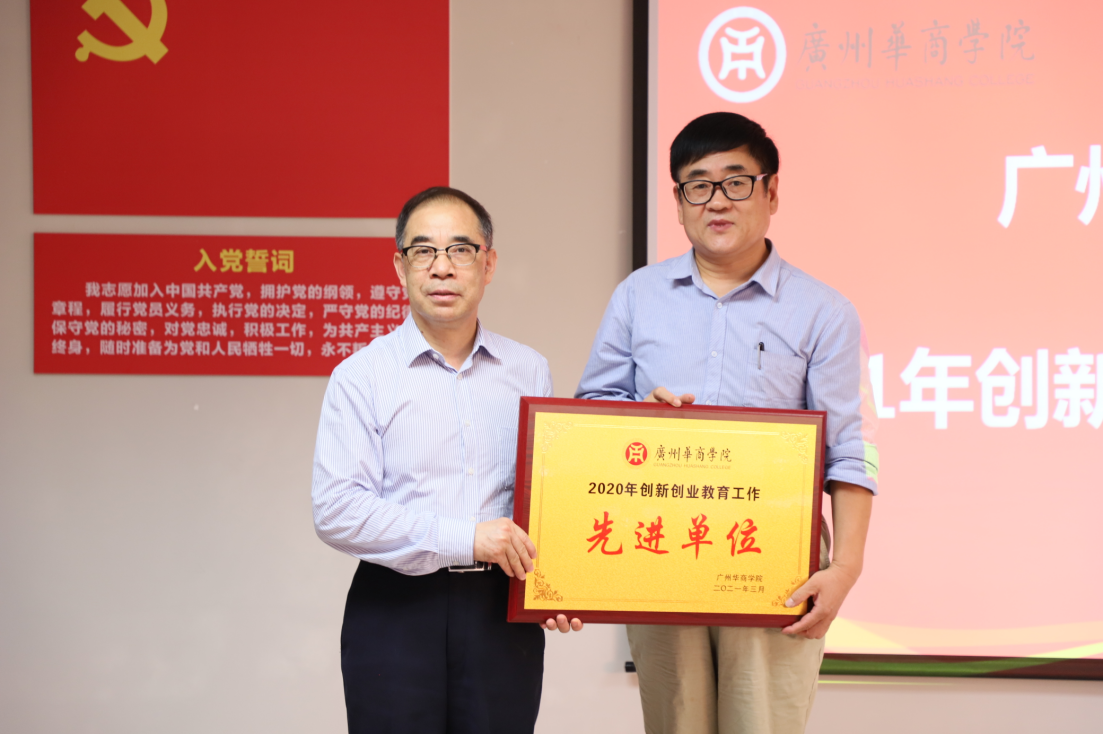 随后,会议对2020年我校创新创业教育工作做出突出贡献的先进单位和个人进行了表彰。传播与传媒学院、创意与设计学院、经济与金融系、公共管理系、工商管理系荣获先进单位称号,周合强等17位老师被评为优秀个人。
