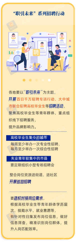 为贯彻落实党中央、国务院关于促进高校毕业生等青年就业决策部署,人力资源社会保障部近日印发通知实施2023年高校毕业生等青年就业创业推进计划,集中力量挖掘就业岗位资源、做实做细就业服务、做好困难托底帮扶、强化就业观念引导,推动高校毕业生等青年高质量充分就业。