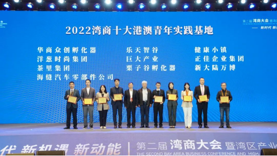 会议发布了2022湾商十大港澳青年实践基地名单,华商众创孵化器获2022湾商十大港澳青年实践基地称号。