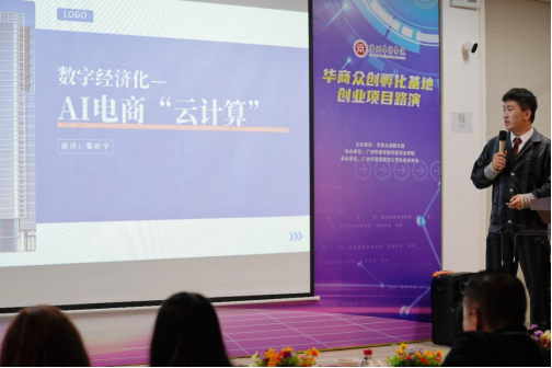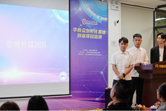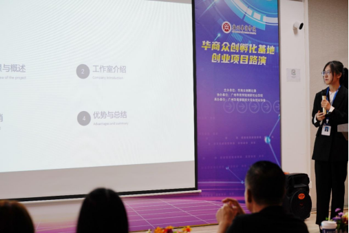 莅临本次路演会的嘉宾有广东孵客科技孵化集团总裁助理、投资总监路斌先生,华商数字化技术与应用研究院院长彭秀东教授,广州华商学院产教融合办公室唐显锋副主任,广东华商众创孵化器有限公司项目专员罗丽玲女士以及广州华商学院创新创业学院陈欢老师。