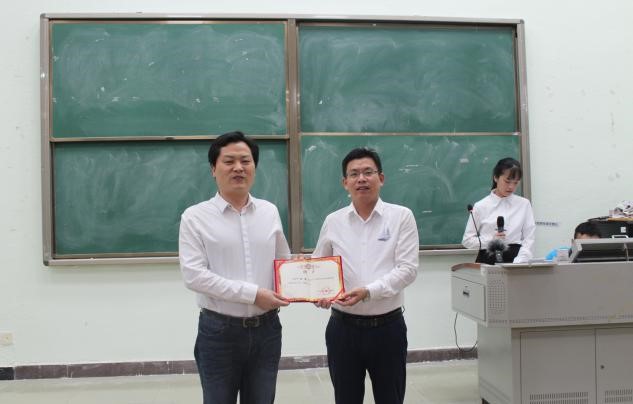 广东财经大学华商学院创新创业学院常务副院长余家军博士为刘俊总经理颁发聘书,刘俊总经理受聘为广东财经大学华商学院创新创业导师。