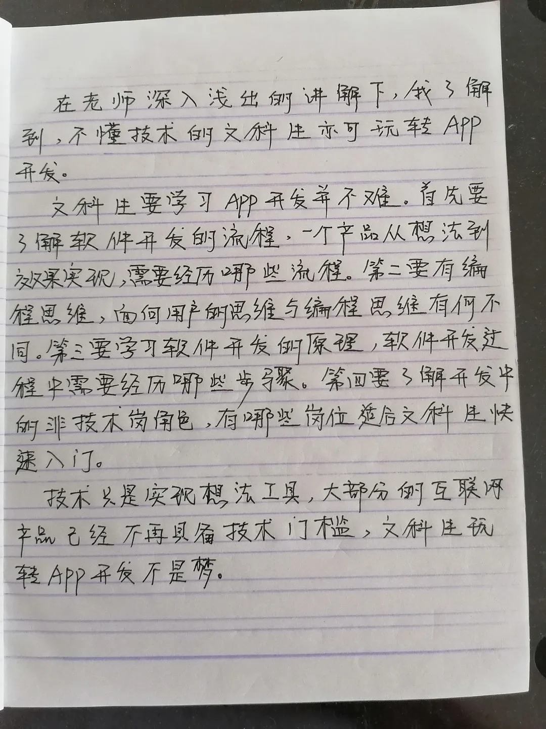 四是软件开发中的非技术角色:产品设计、产品运营和项目经理这三个岗位适合文科生迅速入职,陈晓军老师还分别分析了这三个岗位的职责。