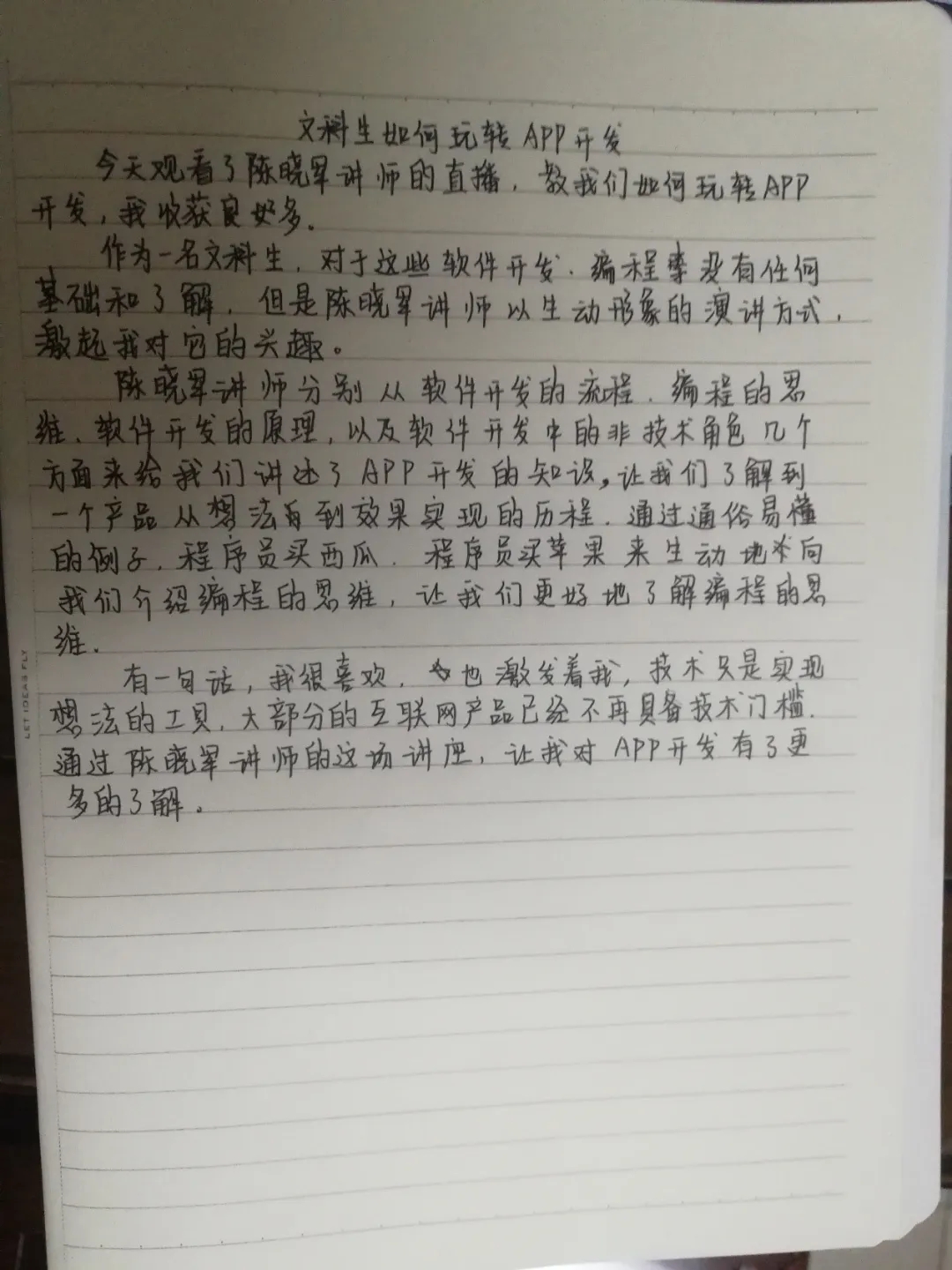 雷声滚滚,大雨如注,伴随第一场大雨的结束,我们迎接了夏天的到来。一月离开华商学院,如今已是五月下旬,线上学习仍在继续,然而学无止境,同学们不曾停止学习的脚步,华商也不断为同学们提供一次次新的学习机会。5月21日20:00,由陈晓军老师带来的网络直播课“文科生如何玩转APP开发”,为同学们打开新的学习视角,下面让我们一起回顾这场网络直播课的精彩瞬间吧!