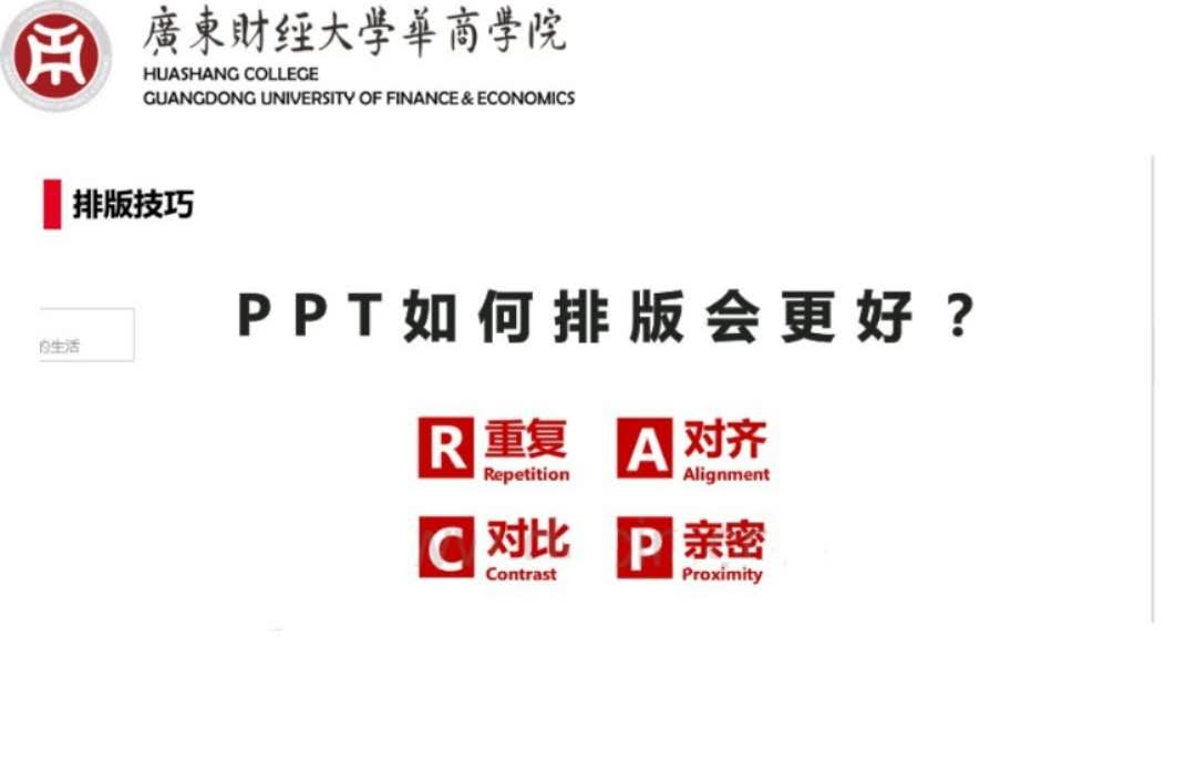作品中的一些元素可以在整个设计中重复出现,但不能在页面上随意安排,将有关联的内容组织在一起产生凝聚力,重点内容可改变字号、颜色等形成对比,一个简单漂亮的ppt就出来了。