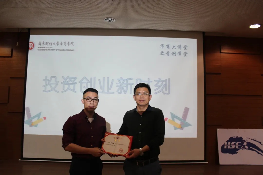 讲座伊始,校长助理、创新创业学院常务副院长余家军博士为郭文基先生颁发聘书,郭文基先生受聘为广东财经大学华商学院创新创业导师。
