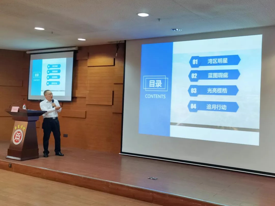 张博士向同学们介绍东莞的历史背景和地理优势。接着,他从“港区明星”、“蓝图瑕疵”、“光亮桎梏”和“追月行动”四个方面入手论述东莞创业者如何做出正确的就业创业抉择。此外,他还通过举例解说的方式,对东莞当下产业发展问题进行详细的分析,以便同学们更好的理解。
