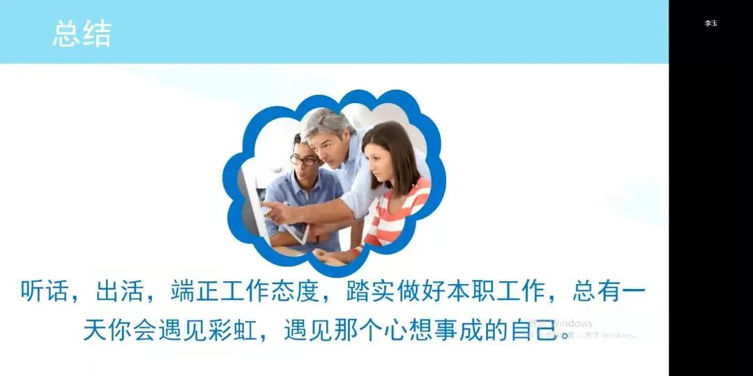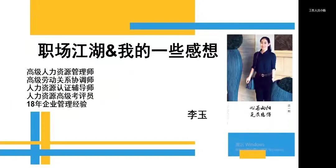 李玉老师向同学们分享了她17年的职场故事,和同学们一起回顾她的成长历程,引用案例分析阐述了初入职场的感悟、稳定发展的感悟以及总结在工作中的要求等。