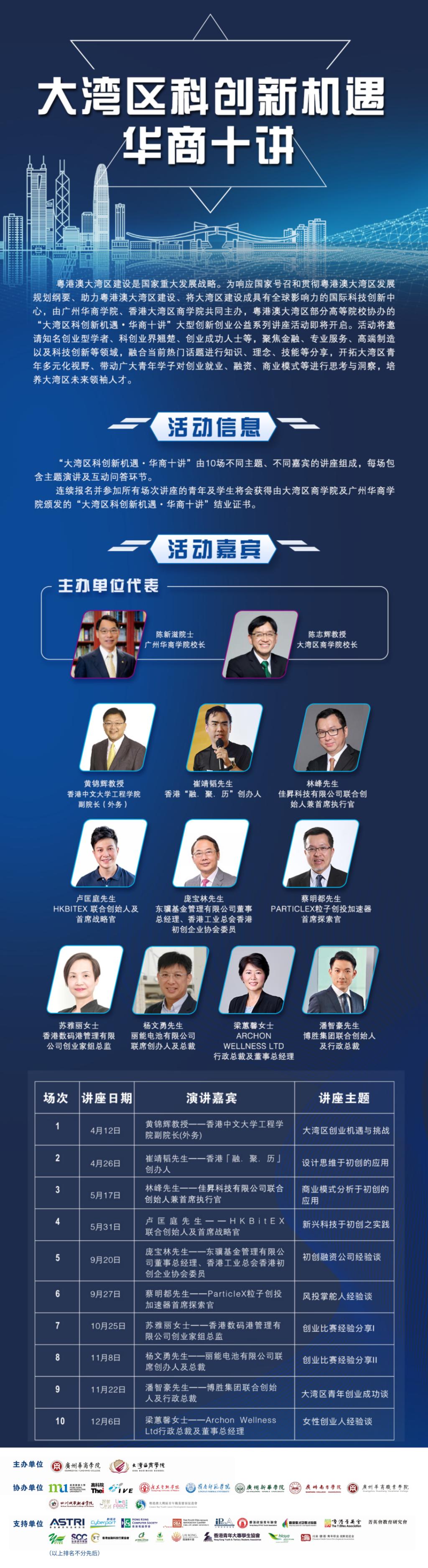 主讲人将给予青年学子在大湾区创新创业切合实际的指导,帮助青年们抓住时代的机遇,让成功变得更近一步!