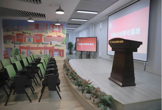 华商众创孵化基地位于华商学院中央图书馆五楼,是学校着力打造的高层次人才培养创新创业实践平台,依托政府、社会组织资源,与地方协同建设。旨在通过整合校内外各类资源,积极营造良好的孵化环境,引导和扶持大学生团队进行创业,并带动更多的人实现就业,培养大学生创业带头人。