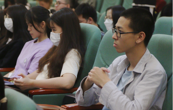 曾教授以问题导入,围绕大学生创业政策、“创新函数”、创业定义、创新创业、创新创业教育的逻辑等几方面展开授课。首先,用一系列图文及数据详细阐述“何为创新创业”。创新包括产品创新、技术创新、市场创新、模式创新等,创业则是创造新价值,实现新事业。其次,他带领大家学习创新创业政策,强调必须坚持创新在我国现代化建设全局中的核心地位,强调创新的重要性以及大学生是大众创业万众创新的生力军。再者,他提出创业者的核心能力是领导力,而领导力包括认知力、创新力和传播力。通过相应案例详细讲解三力,在讲解传播力时,他强调好的产品要触发情绪的痛点、爽点、痒点。针对“创业如何走向成功”,他指出,创业过程包括三个核心要素,包括商机、资源和团队,创业过程需要天时地利人和。最后,他为现场师生进行主要创新创业大赛专题辅导,以专业知识、实践经验、行业洞见为大家分析“挑战杯”“互联网+”等创新创业大赛项目。鼓励同学们读原著、学原文、懂原理,结合专业特点与自身优势,积极参加各类创新创业竞赛,培养创新精神和创业基因。