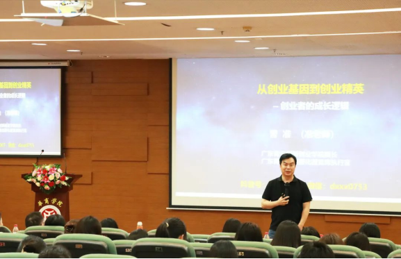 广东青年创新创业学院院长、广东青创壹佰孵化器首席执行官曾准教授应邀作《从创业精神到创业精英——大学生创业者的成长逻辑》主题讲座。本次讲座由校团委陈刚书记主持,创新创业学院、校团委相关工作负责人及师生近300人聆听报告。四会校区300名学生线上观看直播。
