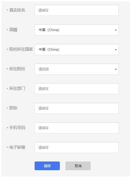 真实姓名、国籍、院校所在国籍可填写英文,其余信息均填写中文。