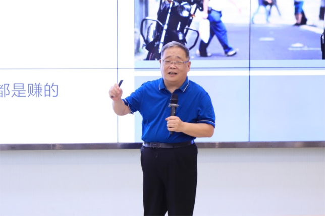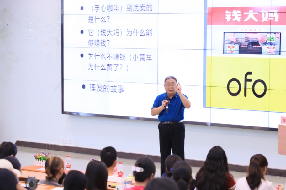随后,张耀辉教授以中国老干妈陶华碧创业的故事为例,发散同学们的创新思维,深度解析其中蕴含的的创新精神、创新意识与创新人格三方面的创新素质,提出创新创业精神是创新之根本的观点,希望同学们能以创新为荣,追求创新。张耀辉教授还强调要树立“风险意识”,并引导同学们利用风险、运用自己的胆识和眼光,走在时代的前沿。