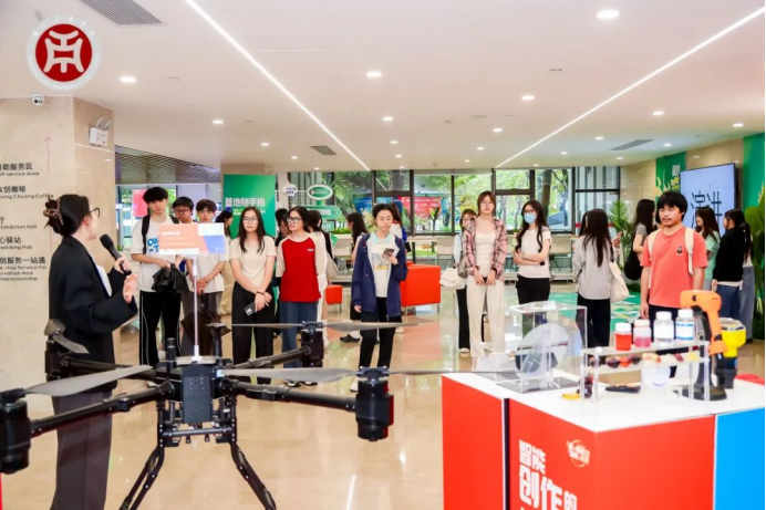 随后,师生走进基地数字生态成果转换实验室。实验室中3D打印、激光雕刻、柔性产线等设备让师生们感受了科技转化落地的全过程,深刻体会到“科技硬实力”在创业进程中的关键作用。