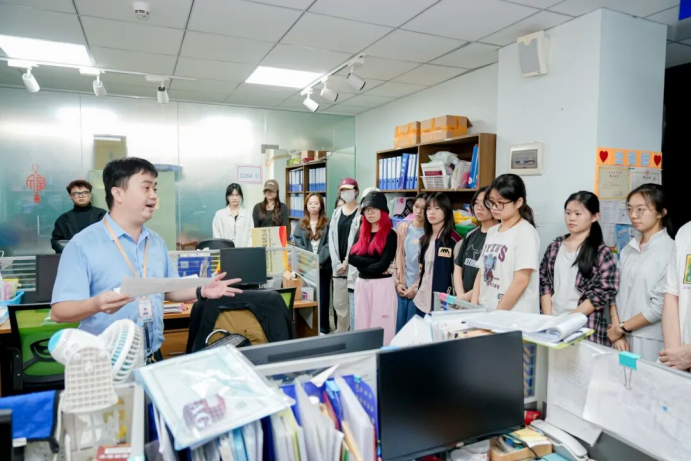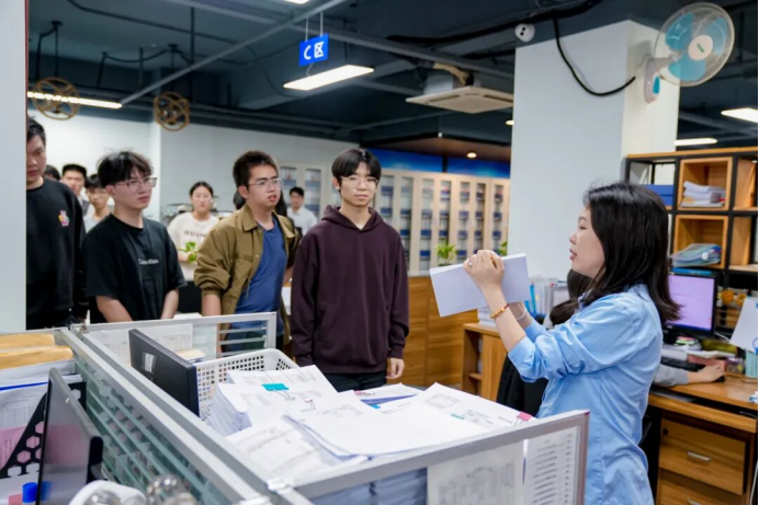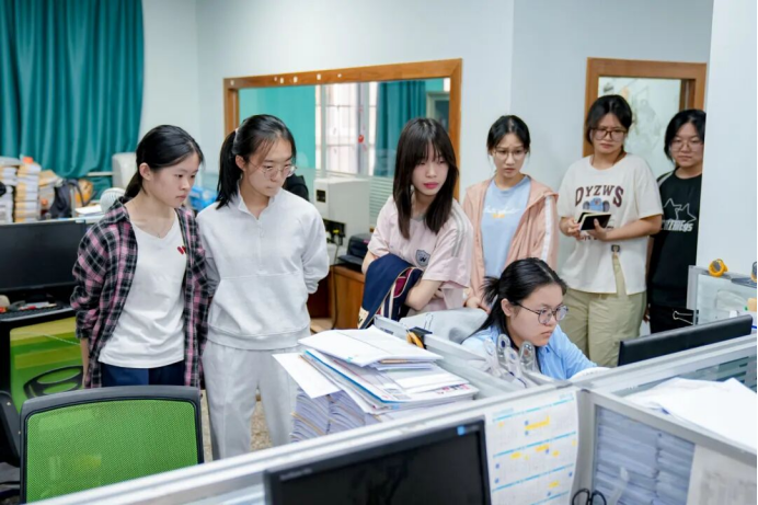 在企业代表的带领与讲解下,师生团队依次参观了代理记账部、税务部、审计部及客户服务部等职能部门。通过现场观摩会计凭证审核、纳税申报表编制、审计底稿整理及客户咨询应答等实际工作场景,直观感受财税服务企业的日常运营状态。企业代表就各部门职能定位、业务衔接机制及质量控制标准进行了系统讲解,进一步加深了学生对财税行业职业属性与实践要求的理解。