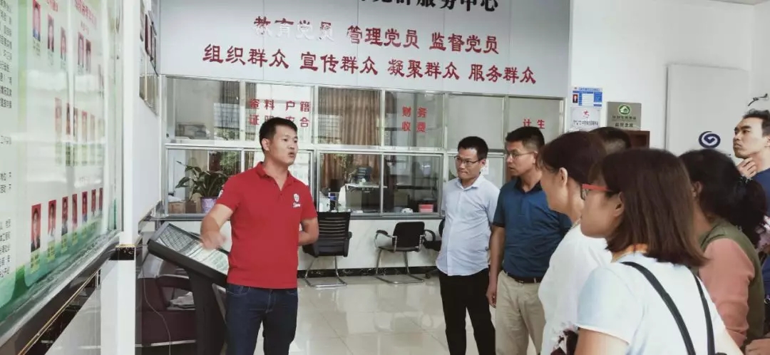 郭庆东书记又带我们参观社区便民服务中心。这栋豪华大楼是下围村变富变强的最好见证。在这里,郭庆东书记说起下围村的惊人变化时,非常感慨。如今的下围村不但做到村务公开,还把权力落到实处,让真正有才能的人为村民谋福利。