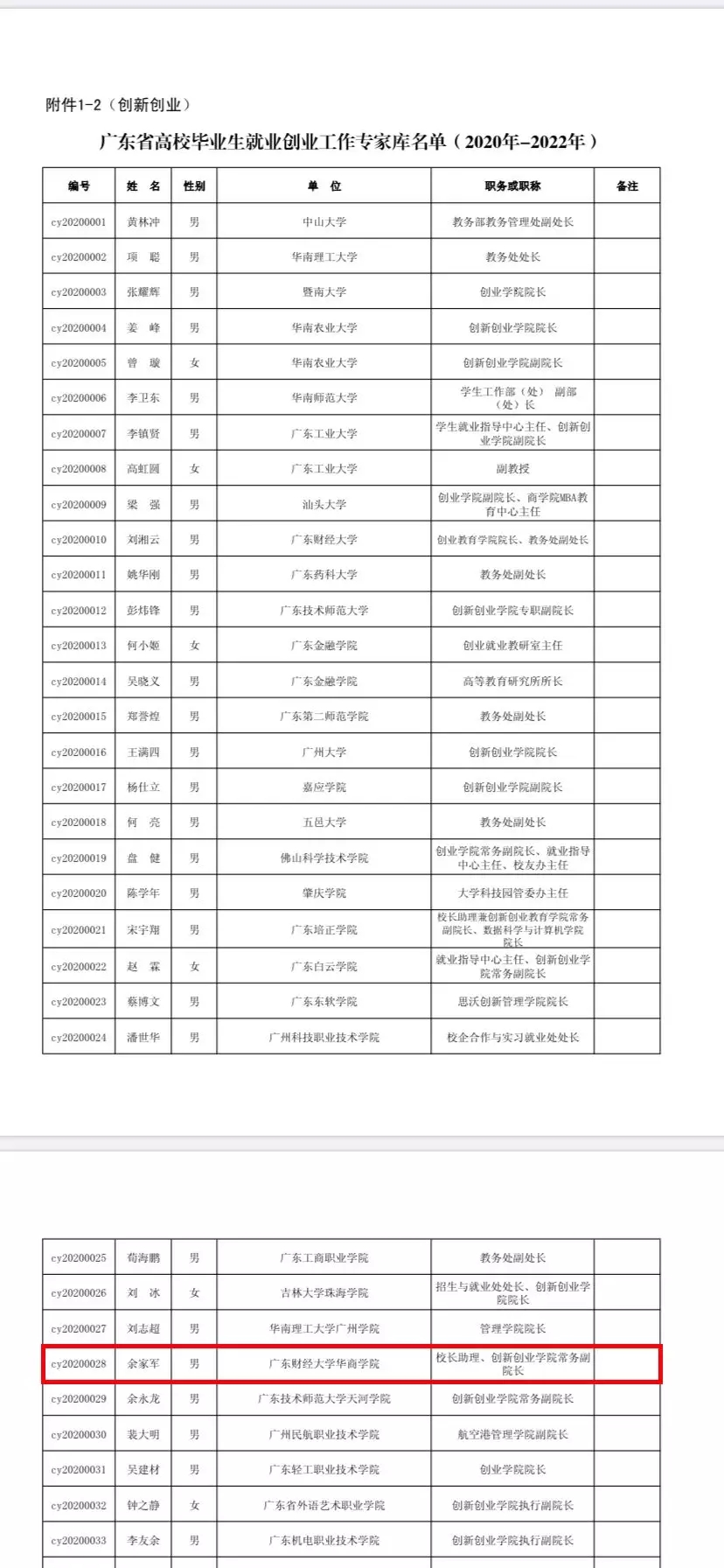 2019年12月16日,广东省教育厅公布了《广东省教育厅关于建立首届广东省高校毕业生就业创业工作指导委员会及专家库的通知》。依据省创业工作专家入选资格条件和流程要求,我校校长助理兼创新创业学院常务副院长余家军博士被聘为“广东省高校毕业生就业创业工作专家库专家”,任期三年。