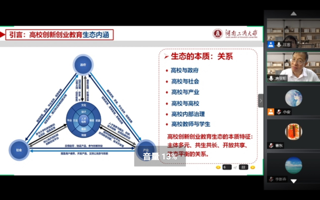 大会上,原中国青年政治学院前副院长,KAB创业教育中国研究所所长,著名创业学者李家华教授做了题为《基于创新创业生态优化视角的创新创业教育正向升维与逻辑再构》的开篇演讲,湖南工商大学党委书记唐亚阳做了《关于高校创新创业教育生态几大关系问题的思考》进一步对当前高校创新创业教育提出了自己的观点。此后,中山大学的李新春教授,清华大学的雷家骕教授,浙江大学斯晓夫教授,英国埃塞克斯大学企业和创新管理学院院长、创业研究中心主任、国际经合组织地区经济与就业发展委员会委员国际创业论坛(IEF)主席Jay Mitra 教授等等国内外知名专家学者和企业界人士展开了演讲。