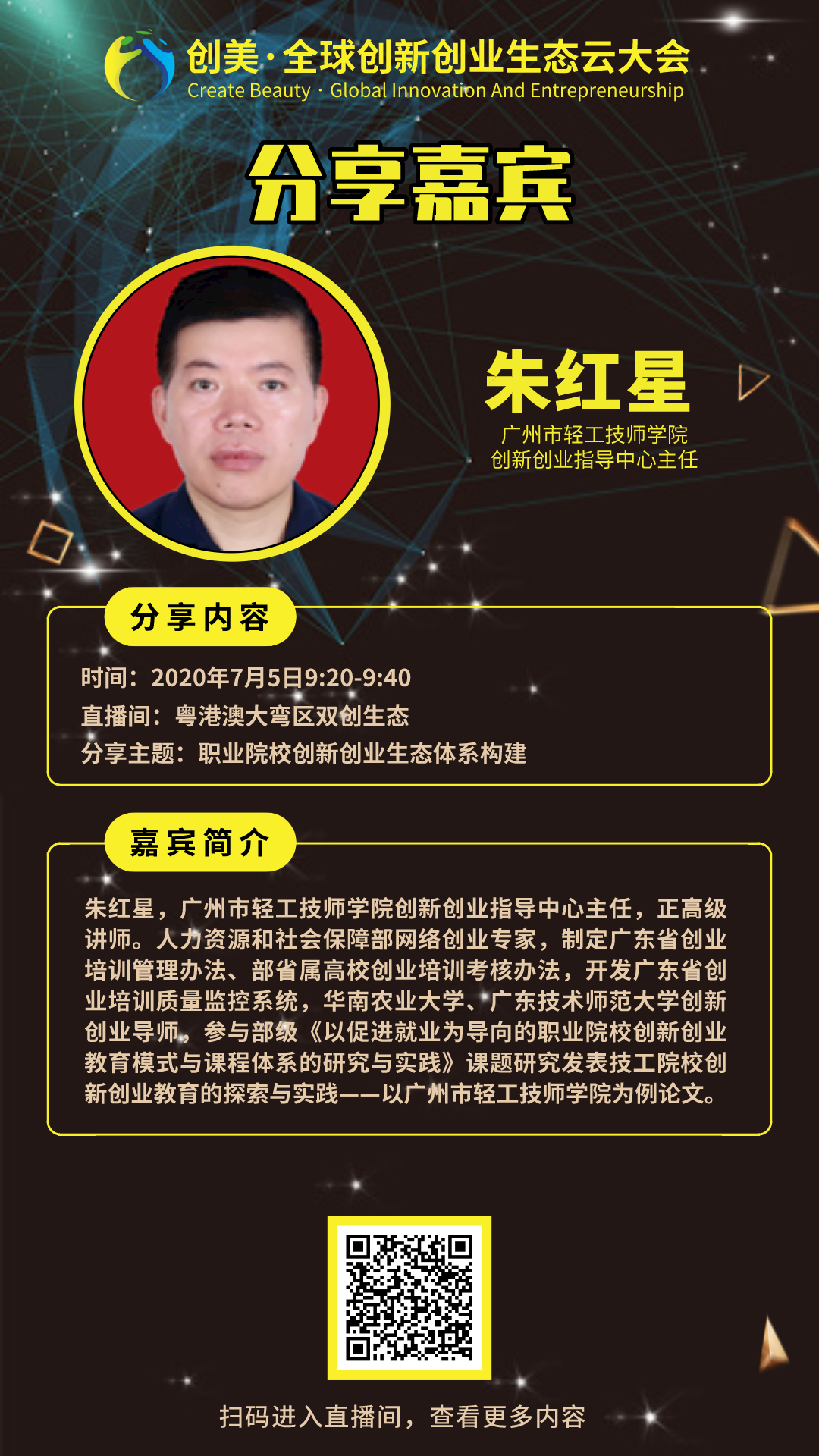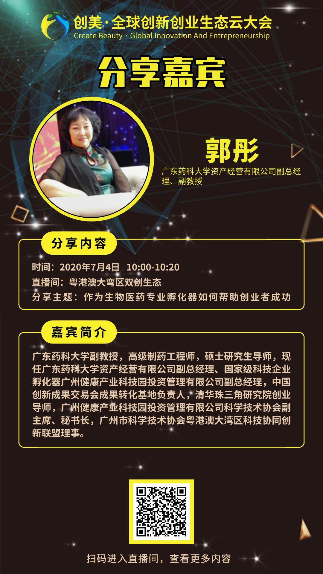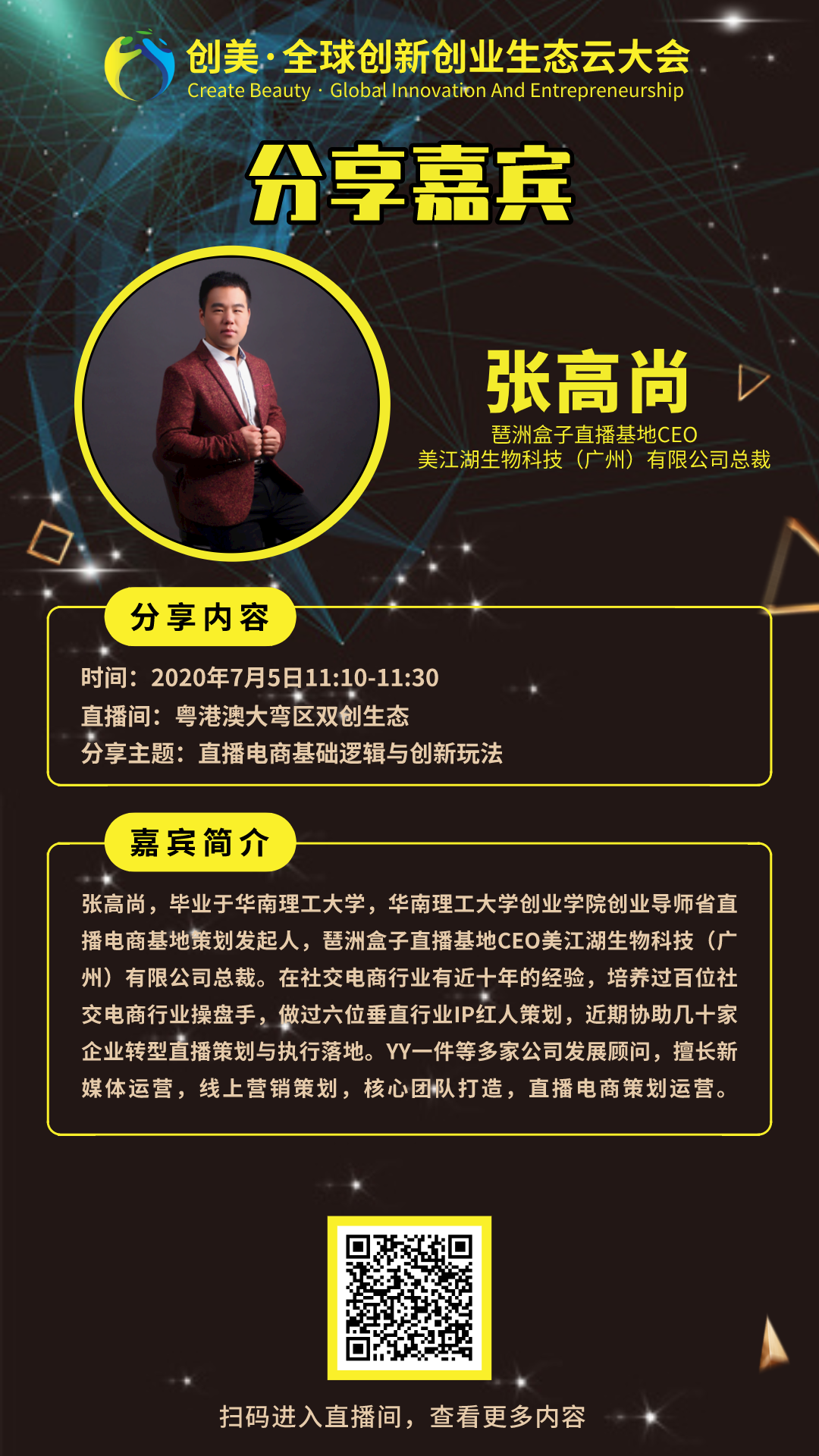 7月4日,创美·全球创新创业生态云大会粤港澳大湾区双创生态模块将正式开幕,20余个主题,包括生物医药、养老行业、现代农业、高校双创等多个话题,由多位深耕于这些领域的学者、企业家、政府工作人员进行展示。这将是一次关于粤港澳大湾区双创活动的生态展示和深度经验分享!