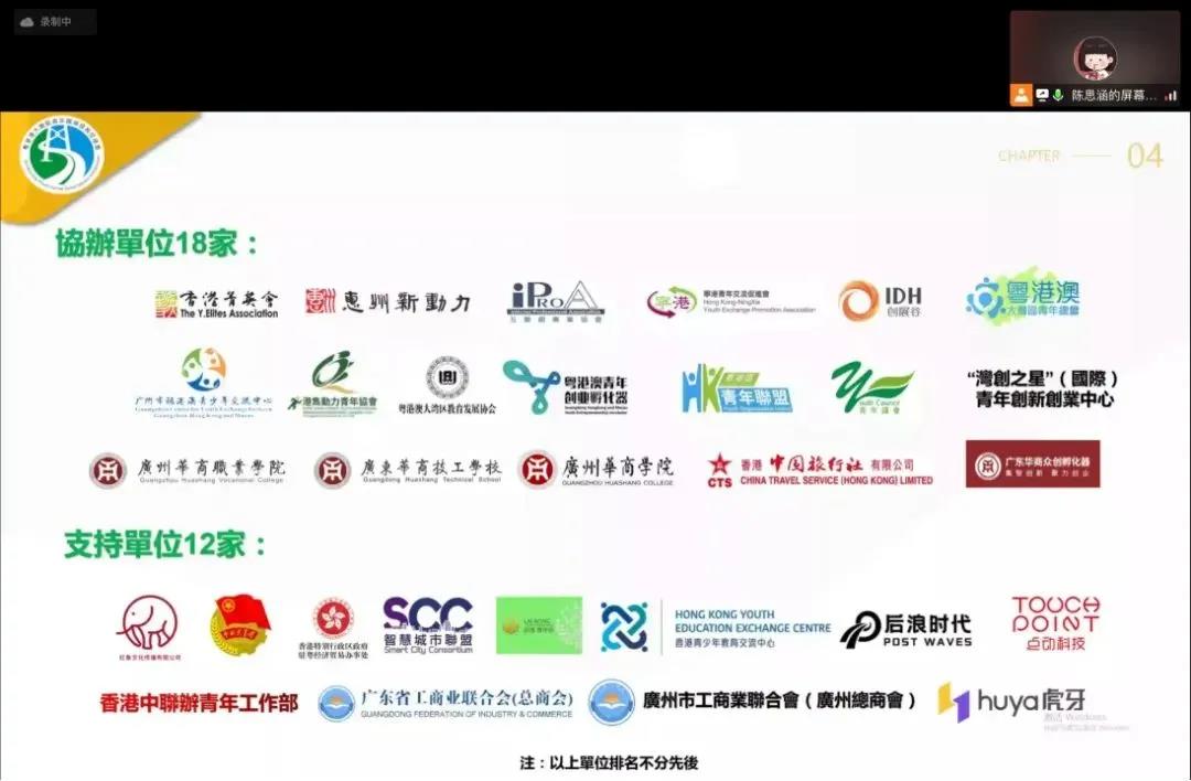 粤港澳大湾区青年职业发展促进会创会主席廖伊曼也为各位顺利毕业的学员送上祝福视频,她对各位学员积极参与大湾区的线上研学专案和授课老师的辛勤付出表示感谢,希望学员们能在未来的工作和生活中灵活运用这一个多月所学的知识,并期待疫情结束后大家能相聚大湾区,进行线下交流。同时,廖伊曼主席由衷感谢各协办单位、支持单位、兄弟姐妹协会对本次活动的大力支持。本次活动得到了社会各界的大力支持,共有18家协办单位和12家支持单位。
