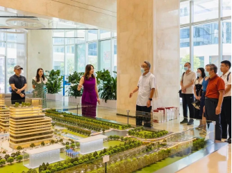 广州云端共享实业有限公司董事长吴智荣、董事CEO汤浩、广州大道文化创意有限公司董事长高锐、抖快点直播商学院执行院长潘院等企业高管代表热情接待我校张捷副校长等一行。在企业代表的带领下,学校领导一行参观E.C.Park园区风情各异的建筑,了解到园区布局以及先进新潮的设计理念,对园区五座建筑对应的功能有了初步认识。