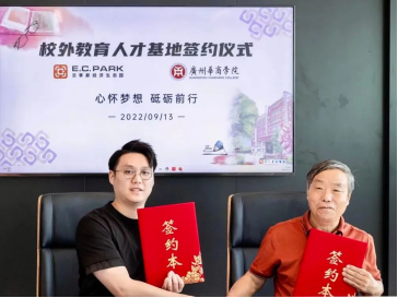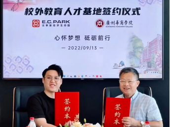 为促进教育链、人才链与产业链、创新链的相辅相成,推动我校校企合作、产教融合再度开花结果,与企业深入交流合作,促进华商学子技能提升、稳岗就业。9月13日上午,广州华商学院副校长张捷率队,与经济贸易学院院长李广明,管理学院院长李招忠,校长助理、创新创业学院常务副院长余家军及相关工作人员一行前往广州云端共享实业有限公司云享新经济生态园(下称:E.C.Park)举行校企战略合作签约仪式暨教学实践基地挂牌仪式,共同开展产教融合项目合作及“校外教学实践基地”建设。