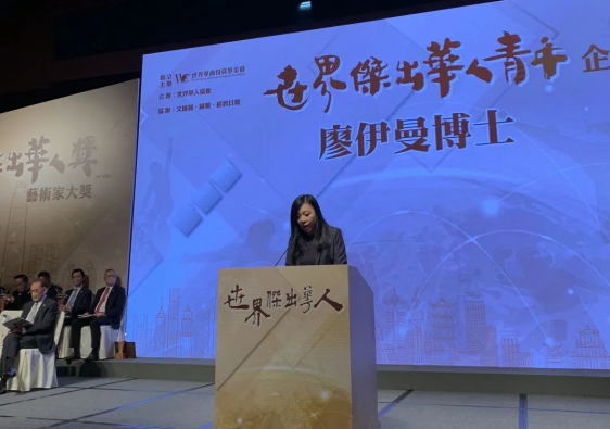 广州华商学院创新创业学院院长廖伊曼荣获“世界杰出华人青年企业家奖”并致辞