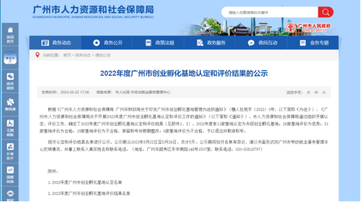 近日,根据《广州市人力资源和社会保障局2022年度广州市创业孵化基地认定和评价结果的公示》,华商众创孵化基地成功被认定为市级创业孵化基地。
