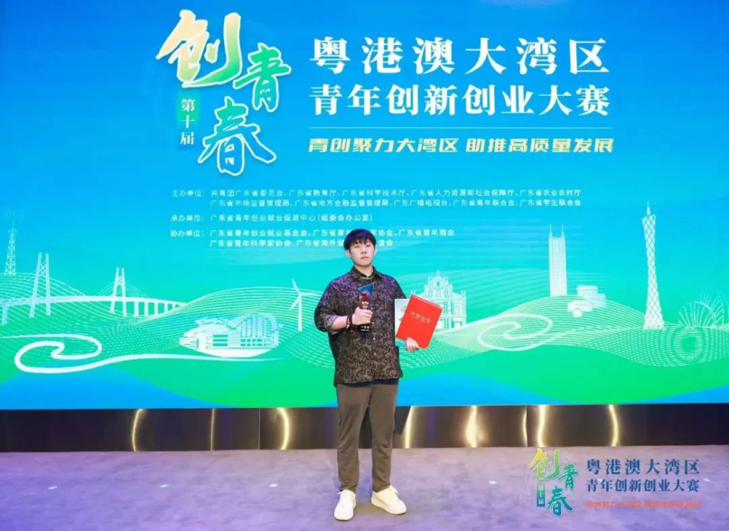 ▲项目创始人高兴参加第十届“创青春”粤港澳大湾区青年创新创业大赛决赛路演