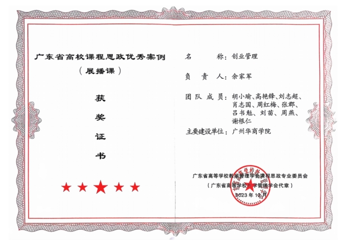 据悉,《创业管理》课程是广东省本科高校2021年省一流本科课程,并作为优秀课程思政案例课上线新华网“新华思政”——全国高校课程思政教学资源服务平台,课程教学团队获第五届全国高校混合式教学设计创新大赛(本科赛道)二等奖。