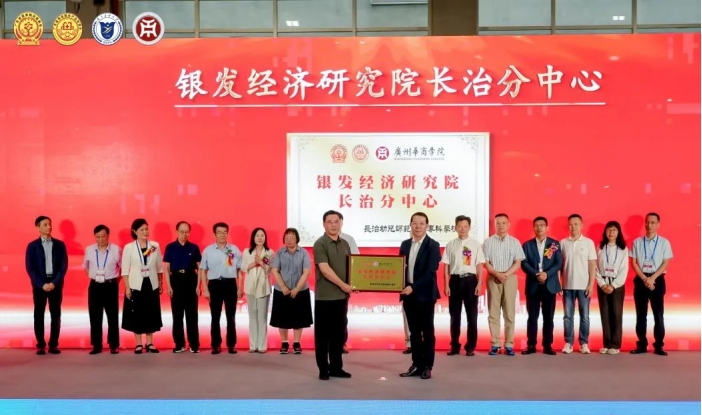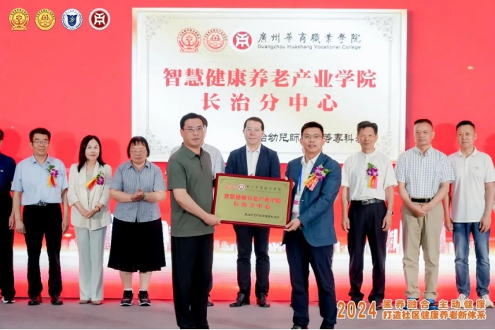 在华商教育集团副总裁刘文琦、广州华商职业学院执行董事杨群祥等领导的见证下,农工党广东省委会人资环副主委、广东省养老服务产业促进会会长李振清,广州华商职业学院校长余家军,广州华商学院副校长吕峻闽,长治幼儿师范高等专科学校副校长杜云峰等领导分别为“广州华商学院银发经济研究院”“广州华商职业学院智慧健康养老产业学院”“广州华商学院银发经济研究院长治分中心”“广州华商职业学院智慧健康养老产业学院长治分中心”揭牌。