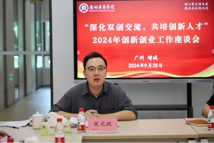 9月25日下午,“深化双创交流,共培创新人才”——2024年创新创业工作座谈会在教师发展中心互动室5顺利召开。广州华商学院学生就业创业处曾龙威处长、宋元跃副处长,创新创业学院行政教辅人员以及各二级学院双创秘书参加本次会议。会议由宋元跃副处长主持。