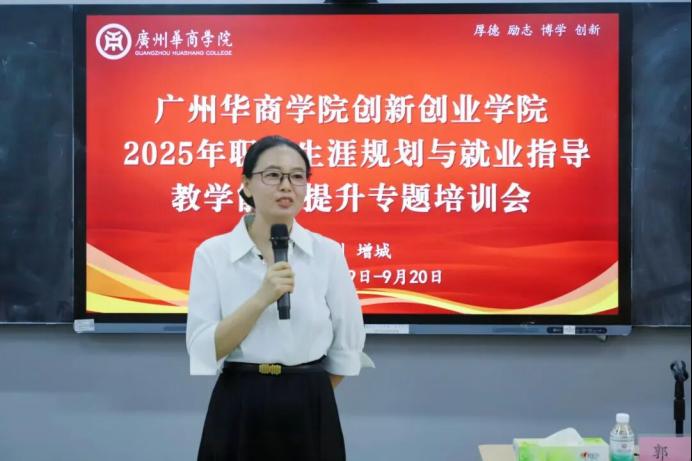 2025年9月19日-20日,“生涯规划和就业指导教学能力提升”专题培训班在广州校区励志楼D206顺利举行,本次培训班特邀教育部全国高校就业创业指导教师培训特聘专家、东北农业大学大学生职业发展中心主任郭勇教授担任主讲。广州华商学院黄伟新校长助理,创新创业学院宋元跃副院长,创新创业学院周燕主任,学生职业生涯规划教研室高艳锋主任,《大学生职业生涯规划与就业指导》课程授课教师、就业指导师,学生就业创业处、创新创业学院全体教师参加培训。