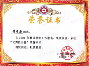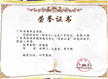 2021年10月,指导学生参加第六届广东高校网络媒体展示节活动——“粤易公益”公益广告作品荣获“广东省二等奖”;