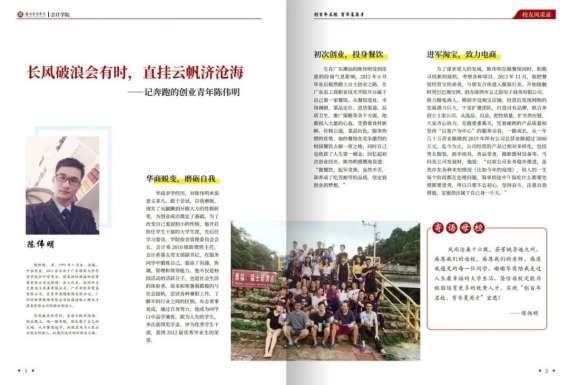陈伟明,男,1990年1月生,汉族,中共党员,2012年毕业于广东财经大学华商学院会计学专业,现在担任威海和鼎贸易有限公司总经理、法人代表,深圳市五 丈原电子商务有限公司,广州伞优伞贸易有限公司,东莞市奕题服饰有限公司,广 州纤织梦服饰有限公司和威海味小鲜电子商务有限公司的联合创始人。长风破浪会有时,直挂云帆济沧海。创业路上,他一路奔跑,闯出属于自己的天地。从开餐馆起步,到现在成为6家公司联合创始人,让我们追寻他的创业之路。