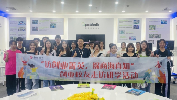 为进一步深化校企合作、拓展学生视野,增强实践育人实效,广州华商学院创新创业学院联合校友办公室举办的“访创业菁英,探商海真知”创业校友走访研学活动于2025年5月27日在广东欧谱曼迪科技股份有限公司成功开展。广州华商学院健康医学院师生一行深入企业,通过实地参观、技术讲解、校友座谈等形式,详细了解了欧谱曼迪在医疗内窥镜等高端医疗器械领域的创新研发、生产流程、市场运营及企业发展历程。