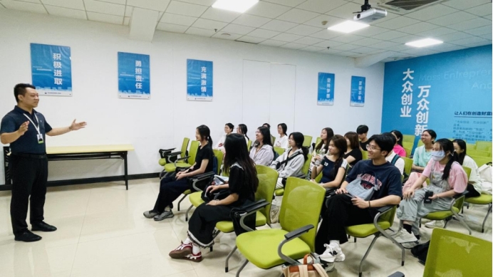 参观活动落下帷幕,师生们齐聚会议室,与庄总监开启了一场意义非凡的座谈交流。庄总监倾囊相授,从自身的创业征程讲起,细数公司一路走来的风雨兼程,又展望大健康行业的未来蓝图。他用亲身经历告诉学弟学妹们,要心怀信念,紧跟行业脉搏,大胆创新。他倡导先向内探索,清晰地认识自己的长短板和职业愿景,提前为未来的挑战做好万全准备。同时,他着重强调了持续学习和探索的必要性,鼓励大家积极寻找学习资源,以适应日新月异的职业环境。