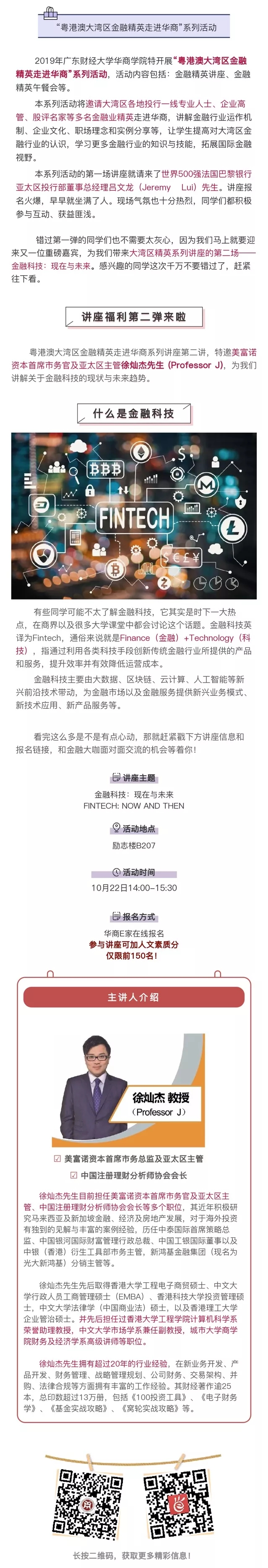 讲座预告 | 美富诺资本首席市务官徐灿杰教授为你深度解析金融科技