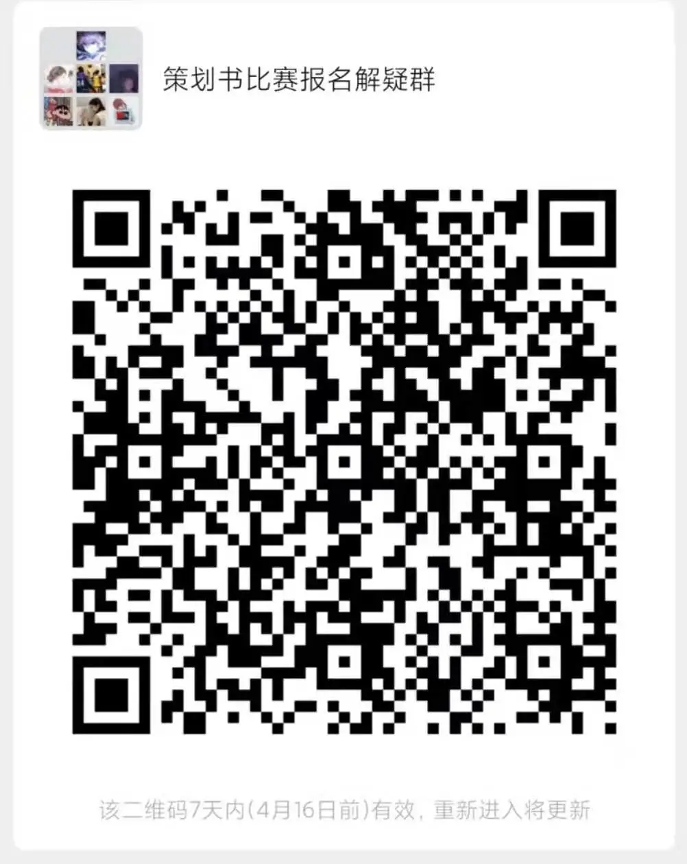 ● 各组于4月19日22:00前将初赛作品发送至策划书作品收集邮箱: