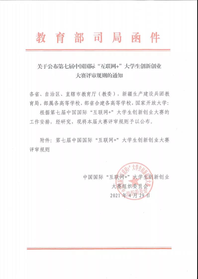 上一条:征集公告 | 关于征集第七届中国国际“互联网+”大学生创新创业大赛吉祥物的公告 下一条:大赛通知 | 关于举办第七届中国国际“互联网+” 大学生创新创业大赛校级竞赛的通知
