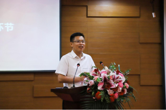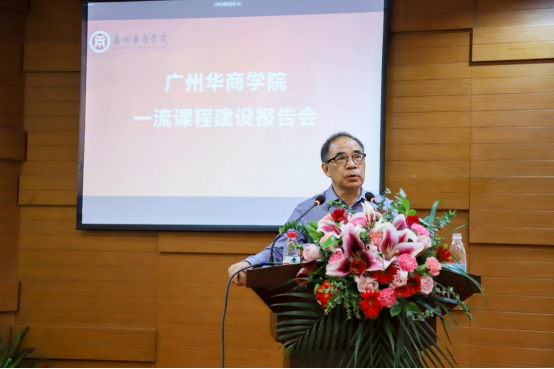紧接着,广州华商学院执行校长郭银华教授为本次报告会发表讲话。他指出,一流课程建设是我校长期以来的重点工作。经过校领导、各教学部门及教学单位不断地努力,我校在2021年的省级一流课程建设中获批6门省级一流本科课程,取得了一定的成绩。但与部分同类型院校相比仍有一定的差距,希望接下来能进一步加大培育力度,深化课程改革,凝练课程特色,提升课程的培养效果,在新一轮的省级一流课程申报中再获佳绩。