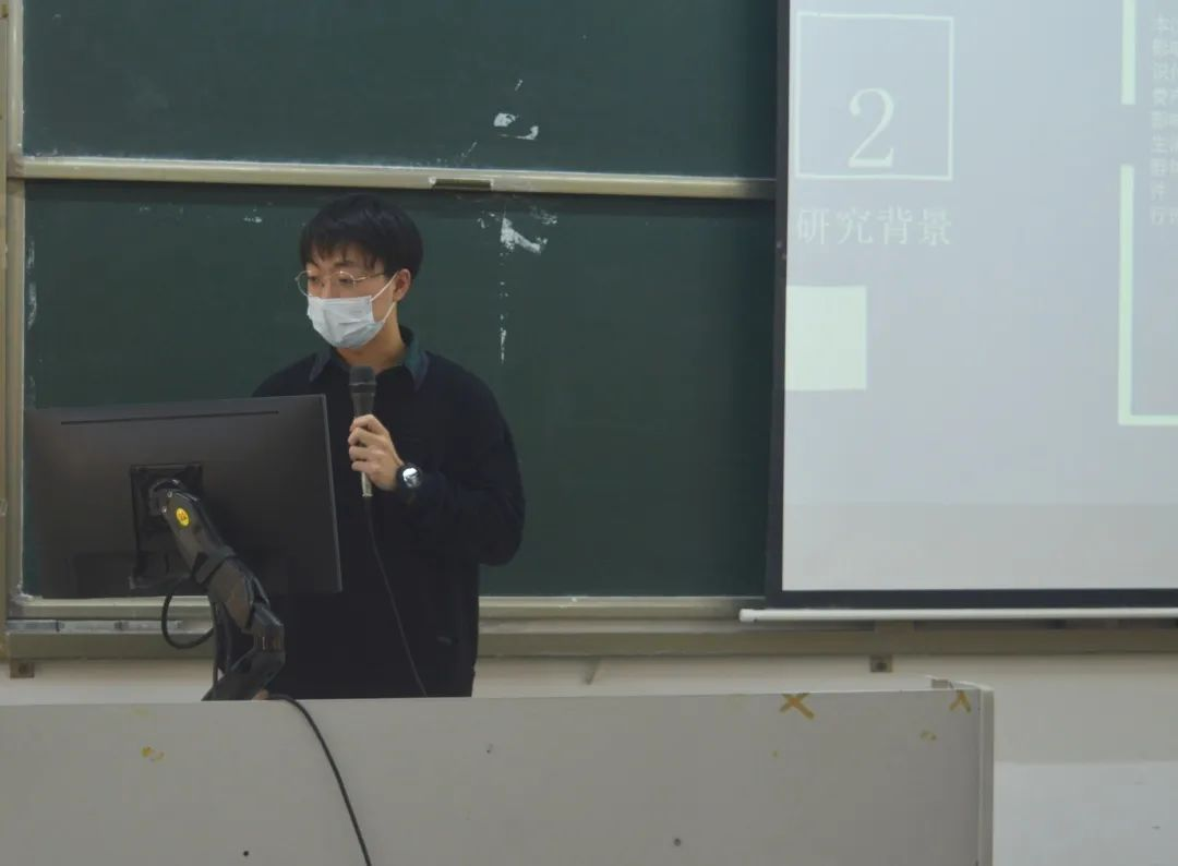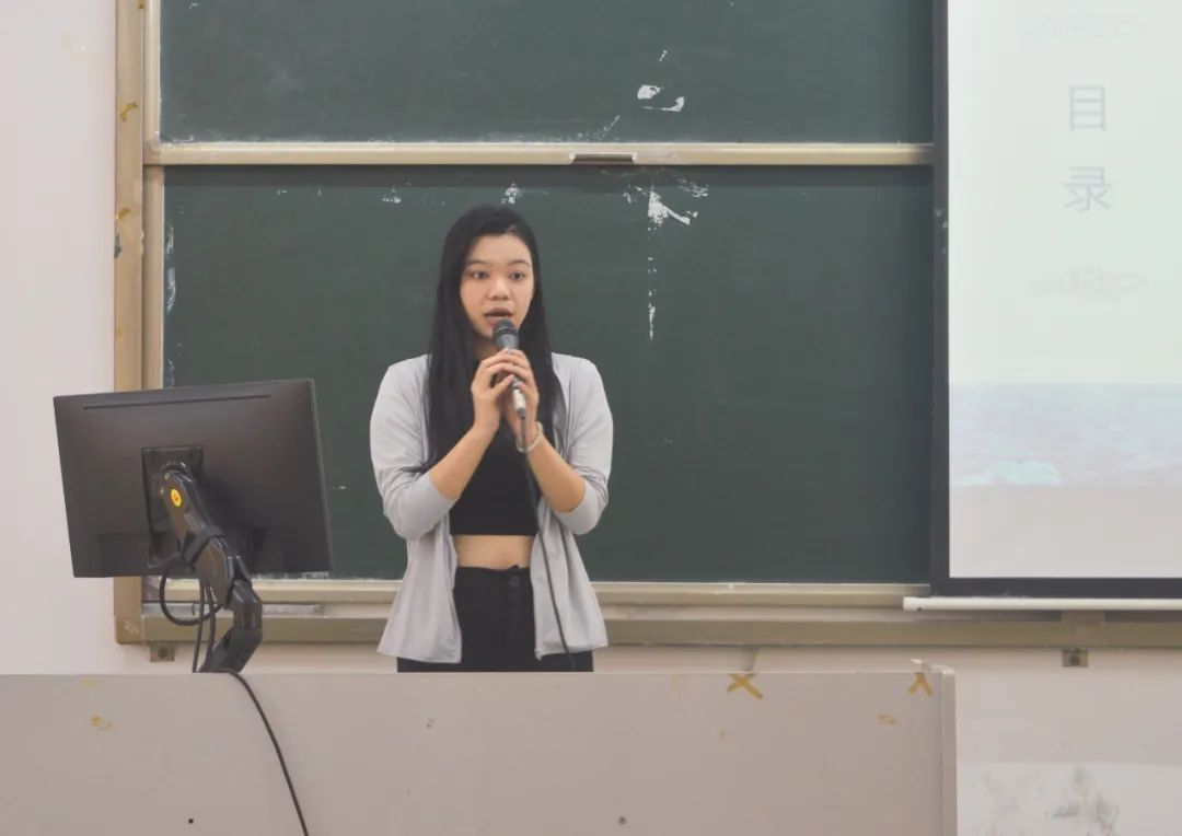 第一小组项目名称是“新冠病毒疫情对大学生知识付费消费观影响调查”。小组代表发言分别从项目研究背景、项目研究目的、项目成果和项目意义四个方面介绍了参会项目。