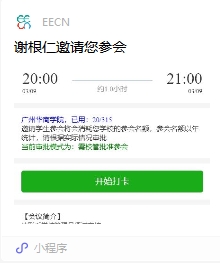 周四晚上讲座开始前,审核通过的报名者点击微信群里的报名邀请小程序,出现以下页面(历史样例):