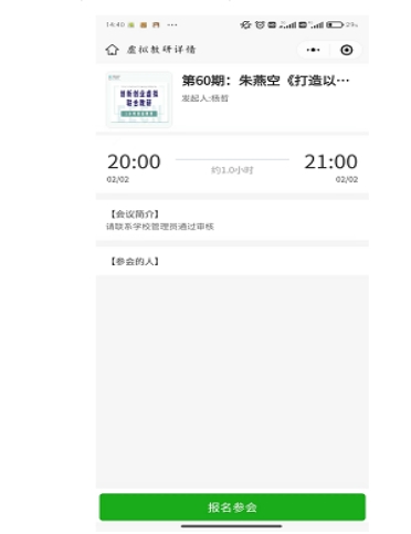 三、地点:线上会议(报名审批后,点击报名邀请小程序即可进入视频会场)。