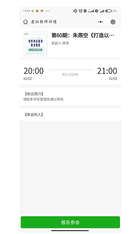 讲座开始前,审核通过的报名者点击微信群里的报名邀请小程序,出现以下页面(历史样例):