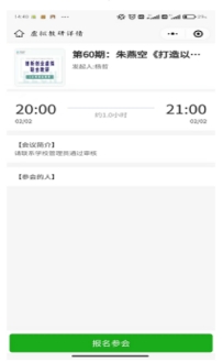 讲座开始前,审核通过的报名者点击微信群里的报名邀请小程序,出现以下页面(历史样例):