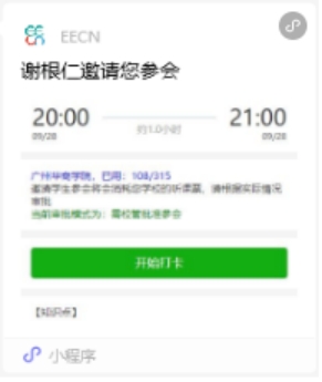 讲座开始前,审核通过的报名者点击微信群里的报名邀请小程序,出现以下页面(历史样例):