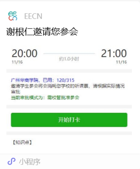 讲座开始前,审核通过的报名者点击微信群里的报名邀请小程序,出现以下页面(历史样例):
