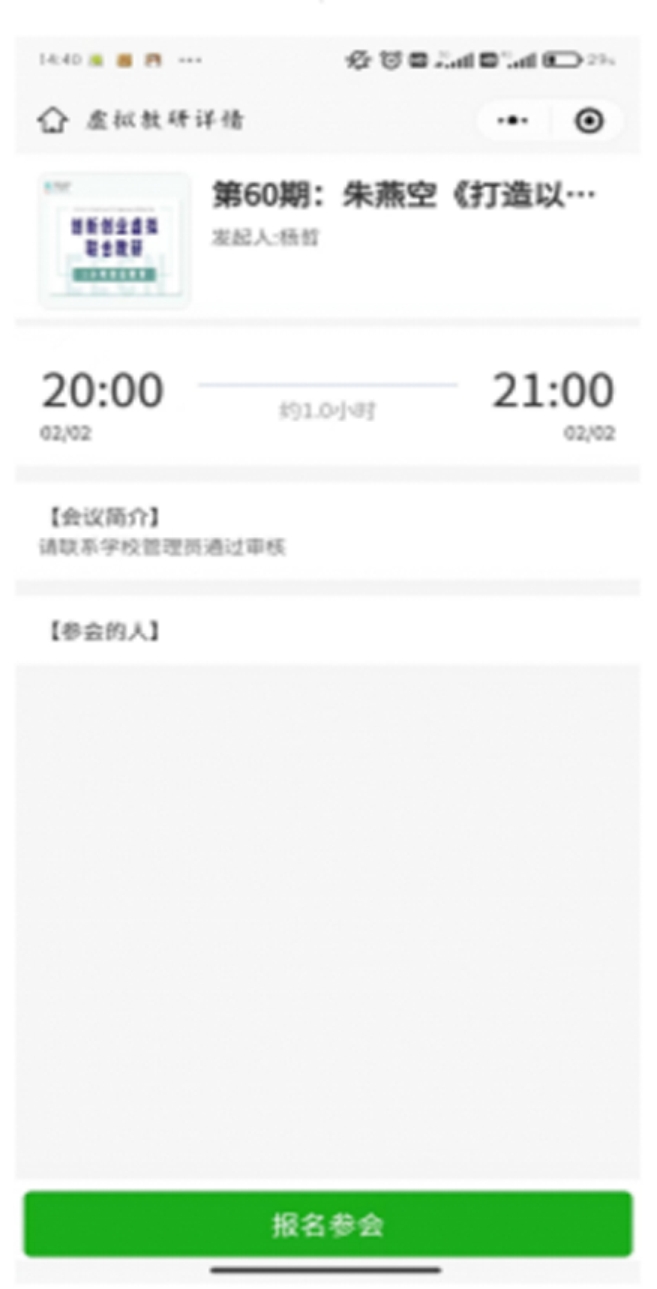 讲座开始前,审核通过的报名者点击微信群里的报名邀请小程序,出现以下页面(历史样例):