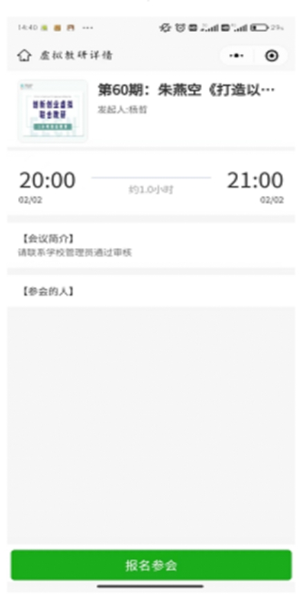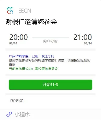 讲座开始前,审核通过的报名者点击微信群里的报名邀请小程序,出现以下页面(历史样例):